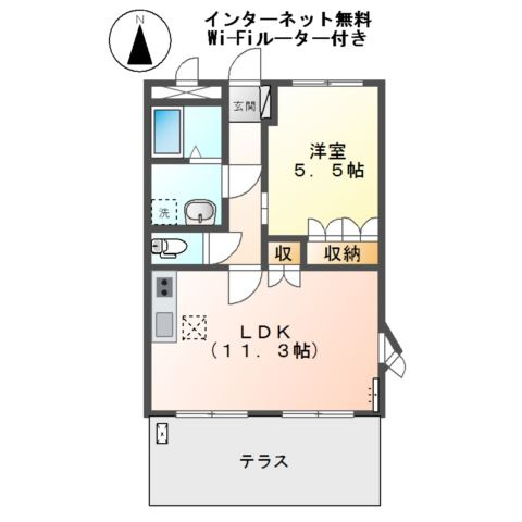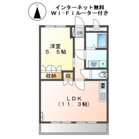 LDK 11.3帖 1室/洋室 5.5帖 1室 - 向き
